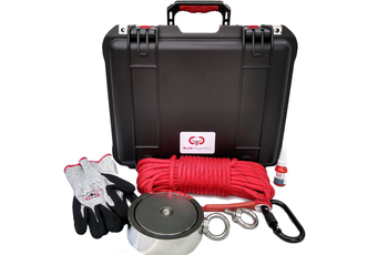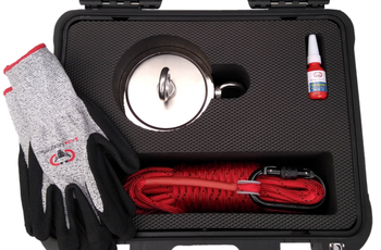 The original all-in-one Brute Box kit with everything you need to start magnet fishing now comes in a double-sided version. This handy durable hardshell carrying case includes one double sided magnet (5.31" - 3,600 lb combined pull), cut resistant gloves, threadlocker, and 65 feet of 1/3" double braided rope with carabiner, nestled in a custom foam insert. Buy now and see what you can discover!