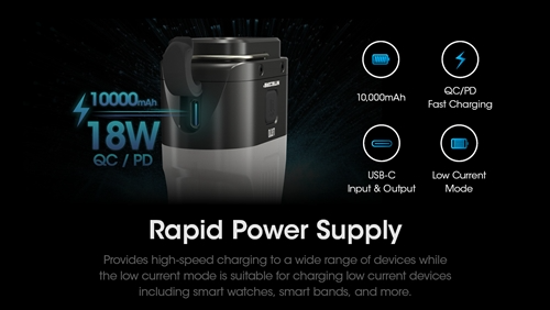 Furthermore, the LR70 features a built-in power bank function capable of providing QC/PD fast charging to a wide range of products, offering reassurance for low-power phones, smartwatches, or other devices via its USB-C port. You can even use the lantern while charging it simultaneously. When fully charged, the LR70 can last for up to 600 hours on its lowest setting, and a power level display keeps you informed about when it's time to recharge.