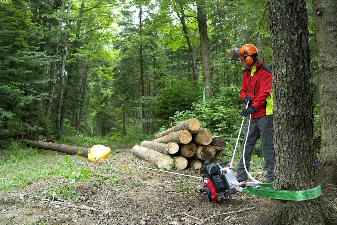Its large opening can fit a trunk of 20'' in diameter, or several bundled stems. The friction on the ground is considerably reduced, which makes it possible to pull heavier loads. It can be used with a portable winch, behind an all-terrain vehicle, a snowmobile, a small tractor and even a horse, in any season, since it can withstand temperatures down to -22°F.